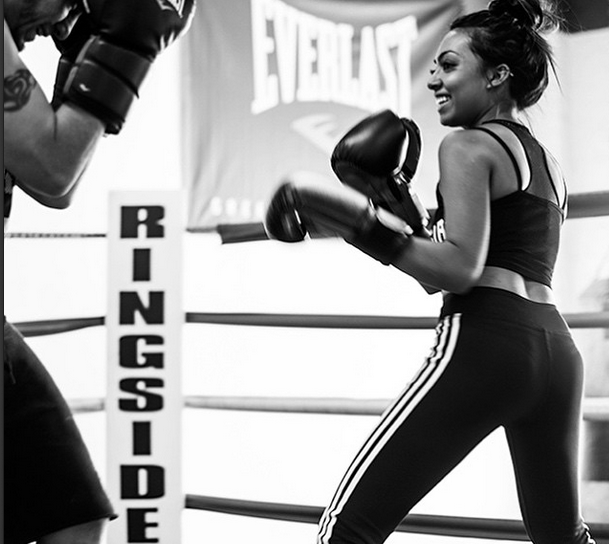 I went for a classic for the bottoms with some solid shaded Adidas leggings. Seen on actress/image consultant above Melinda Shankar as she trains in boxing in a Toronto gym last month. Remember that as much as this post is about finding a cute workoutfit (yes I went there), also think functionality.